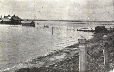 illustration shows the Lytham end of the flooded links, with a pile of household goods on the bank