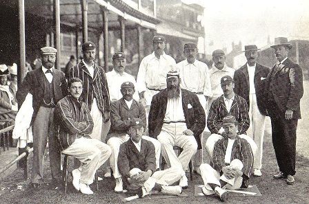 row: C B Fry, K S Ranjitsinhji, W G Grace (captain), Stanley Jackson. Front row: Wilfred Rhodes,