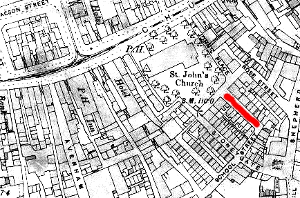 and School Lane, just behind the grounds of the Parish Church. Some of the