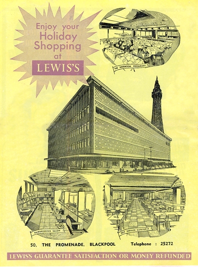 Advert for Lewis's Department Store, 1967; the store was built on the site of the Palace and opened c1963. Click on the image to enlarge.
