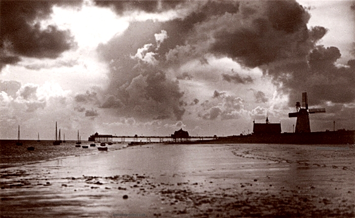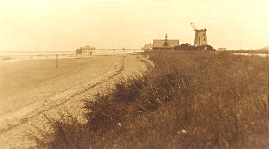 Photo from about 1908 of Lytham beach, windmill &