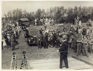 Crowds watched as a Bailey Bridge was constructed accross the park lake followed